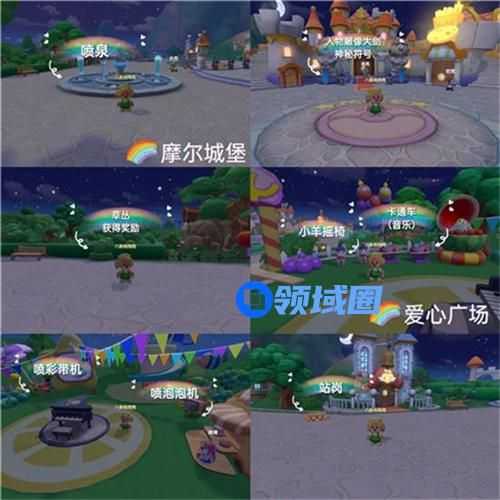 4、爱心广场:可以喷泡泡和喷彩带,可以坐上卡通车(带有音符)、小羊摇椅