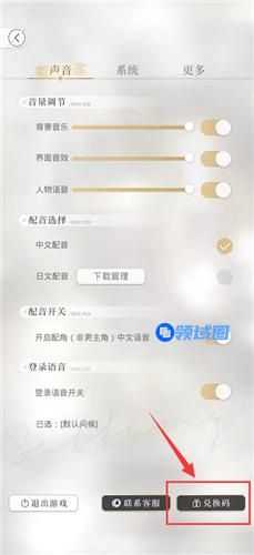 2、进入设置界面之后,可以看到右下角有个兑换码选项;