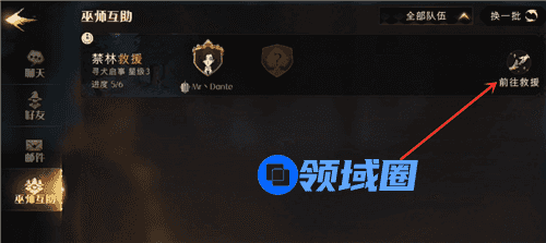 我们点【巫师互助】,会看到里面有一个【前往救援】的选项,点击救援。