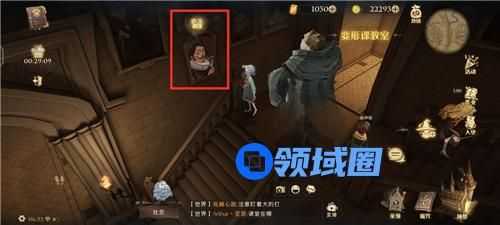 在【楼梯】上,具体位置是黑魔法防御课堂,然后顺着了楼梯往上走,就可以找到了。