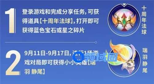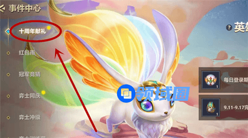 如图所示,大家首先进入到事件中心,点击十周年献礼登录和分享都可以获得十周年法球。