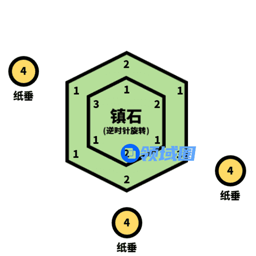 打乱了的话,就按照下图来,稍微找好自己的镇石层数纸垂对应的位置,然后转动相应的层数,达到御币纸垂之和就可以了。