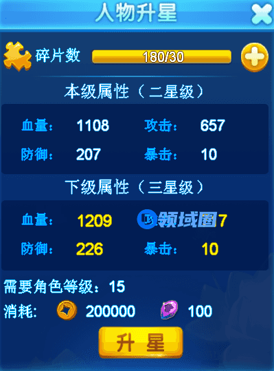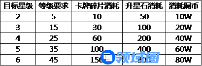 人物升星需要消耗相同卡牌的碎片和升星石,并且卡牌角色达到要求等级。