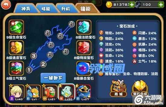 温馨提示:神兵镶嵌的宝石也可以进行融合升级的,相同等级、类型的宝石可以三颗合成高一级的宝石一颗哦!