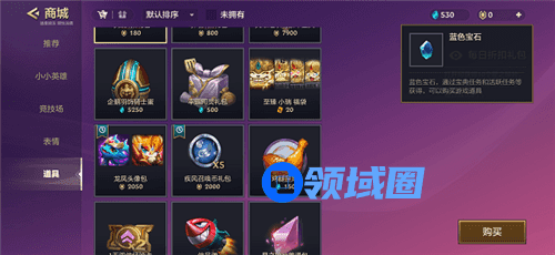 购买游戏道具,最普通的游戏货币,简单来说就是在商城里面找到道具,然后就可以看到这些道具都是通过蓝色宝石售卖的,大家购买就可以获得了,还有小小英雄蛋,可以试试运气,不过比较贵,需要攒一段时间的宝石才能够兑换。