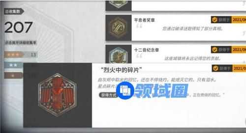 1、烈火中的碎片,是一个隐藏徽章,需要通关第八章的全部关卡;