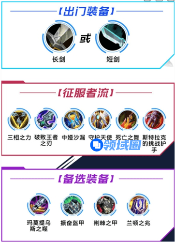 常规出装:三相之力、破败王者之刃、中娅沙漏、守护天使、死亡之舞、斯特拉克的挑战护手