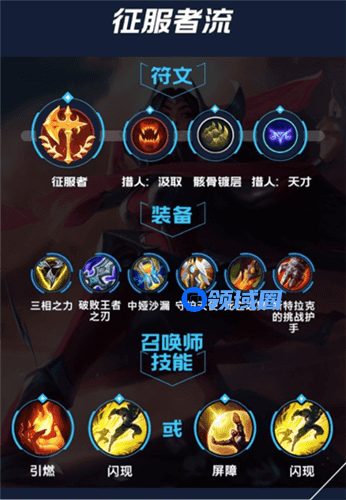 言归正传,这个就是目前手游刀妹的装备以及天赋搭配,其实和端游差不太多,征服者是必带的,还有就是回血了,骸骨镀层对于前期来说很好用,另外就是刀妹的技能cd要快,因此天赋选择了天才。