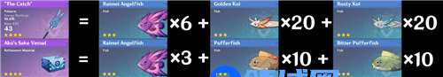 兑换完了以后,我们还要继续钓鱼,来获得鱼类,用来兑换它的专属精炼材料,叫做赤穗酒枡,获取了以后,就可以把渔获精炼了。