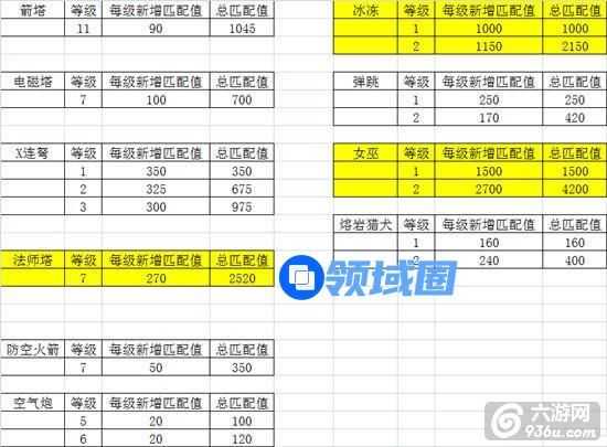 匹配值看来,9本新增的法师塔满级会带来很大的匹配值,二级女巫冰冻也是匹配值巨大,XBOW确不是很高了,貌似很有性价比。。。防空导弹,空气泡的匹配值则基本可以忽略,
