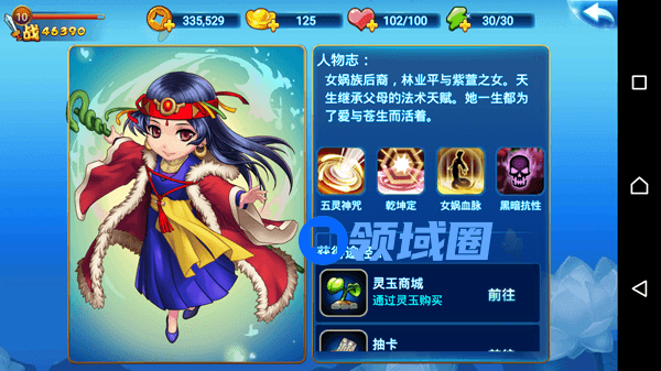 人物志:女娲族后裔,林业平和紫萱之女。天生继承父母的法术天赋。她一生都为了爱与苍生而活着。可以通过“灵玉商城”、抽卡获得林青儿这个卡牌的哦。