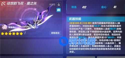 往世的飞花是爱莉希雅的专属武器,其超限武器名为「往世的飞花·爱之矢」,属性技能如下: