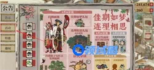 2、然后,点击公告页面左侧的活动按钮并进入;