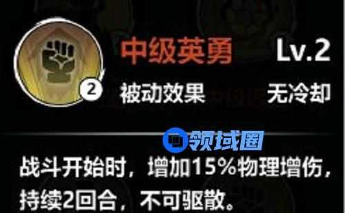 中级英勇魂石属性:战斗开始时,增加15%物理增伤,持续2回合,不可驱散。配合蕾温二技能达到第三级伤害叠加到了217%对后排威胁极大。