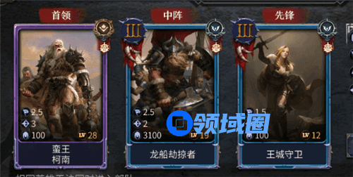 这个阵容是对于0氪党来说最好用的阵容,其中王城守卫和龙船是剧情就会送给我们,然后我们过剧情,到蛮王那里,就会给一张蛮王,然后这样我们就可以组建一个新手开荒阵容了,首领蛮王、中阵龙船、先锋王城守卫,先这样来安排,蛮王是关键。