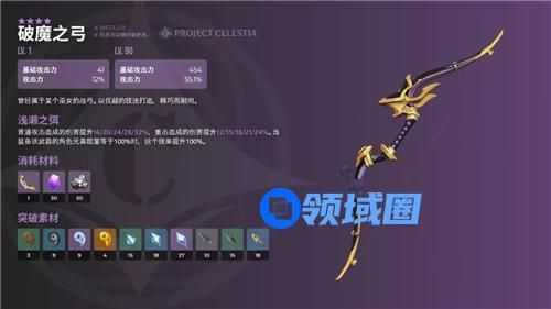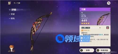增加454攻击力,55.1的攻击百分比,这个和弓藏其实差不多,被动也是能够提高普攻伤害,一精是提高16%的普攻伤害,满精直接32%,但是这个武器有一个局限,就是不能放元素爆发技能,因为在角色元素能量100%时效果能够翻倍,也就是说普攻伤害可以从本来是提升16%直接变成32%,这个对宵宫来说不能够放大招是一个损失。