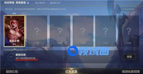 最后回到游戏中,切换到【红包奖励】这一栏,底下有一个解锁任务。完成这个任务之后,就能领取红包奖励了。