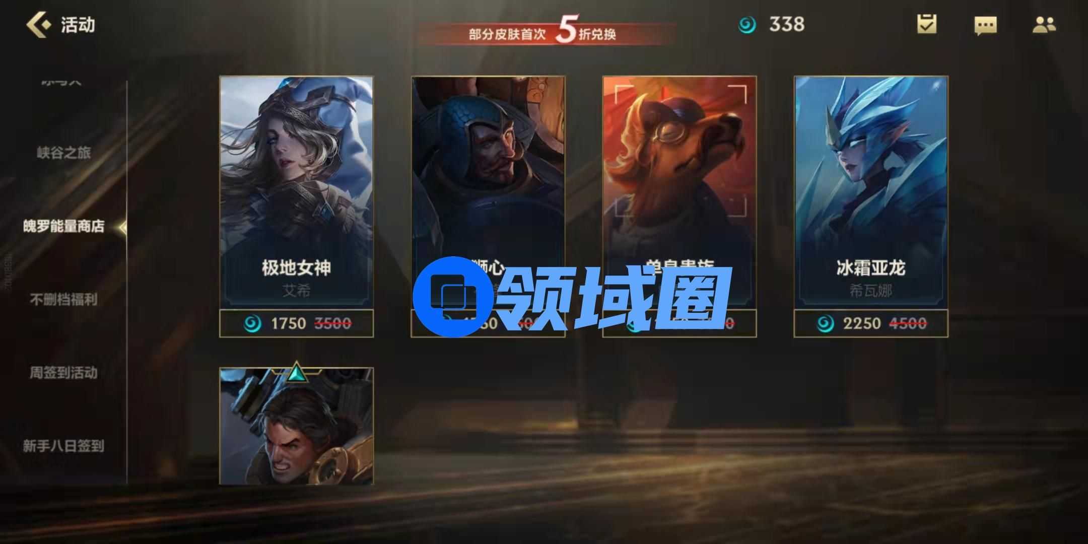 首先魄罗能量商店是活动,可能会在近期结束活动,现在的皮肤都是半折出售,目前一共有五款皮肤分别是