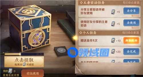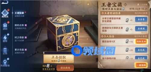 首先限时点券只能在活动-【周年庆】-【王者宝藏】中,完成【王者密语任务】和【个人任务】免费获得。这两种任务会在每天0点刷新,持续14天的时间,完成一次密语任务可获得5限时点券,每天个人任务做满也有70限时点券。