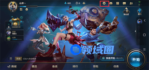 首先我们打开游戏,在主界面的上方点击设置。
