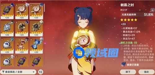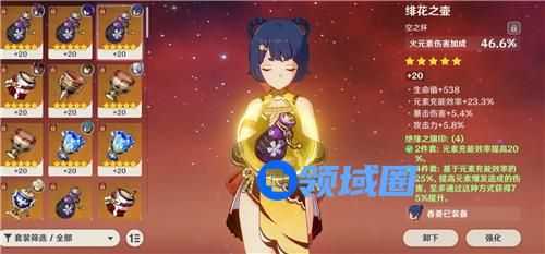 言归正传,这个就是香菱作为脱手副C的一个圣遗物和武器选择,香菱现在很多都是和雷神放在一起,所以充能的要求要低很多,大家可以在副词条的选择上面更加偏向于暴击爆伤,不过绝缘套起码也要吃到50%,不然就不划算了。