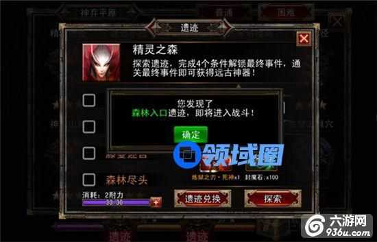 遗迹副本由4个小关卡和1个boss关卡组成。完成这5个关卡可获得英雄专属武器和【封魔石】,不同的遗迹副本奖励不同。1-10级地图神弃平原第一个遗迹副本会奖励主角英雄专属武器。