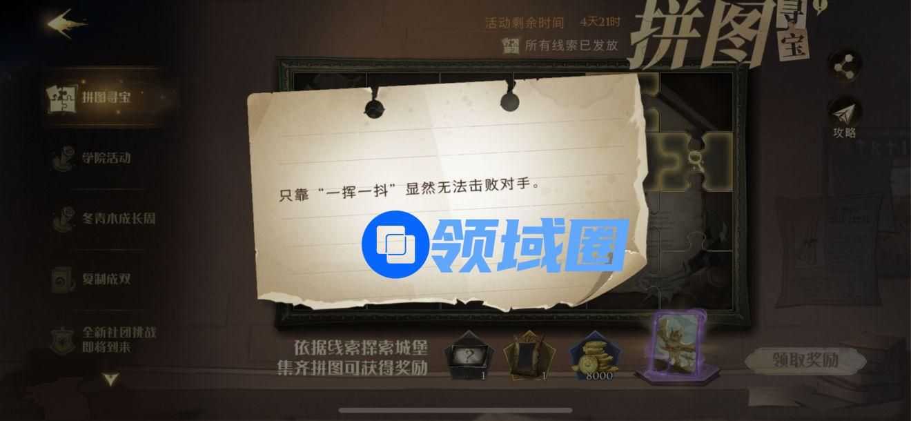 碎片线索是一挥一抖”显然无法击败对手。这个线索是需要我们到魔咒课教室寻找就可以了