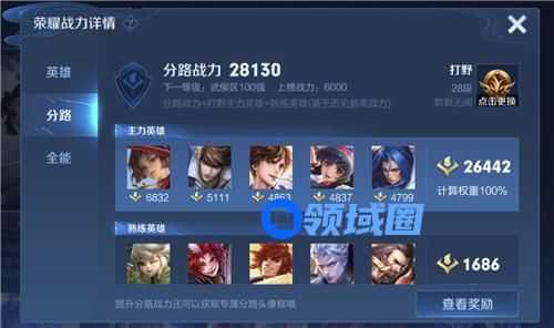 言归正传,这个就是目前的战力分路计算规则,大家只要记住是主力英雄全部战力,和熟练英雄20%战力继承就可以了。