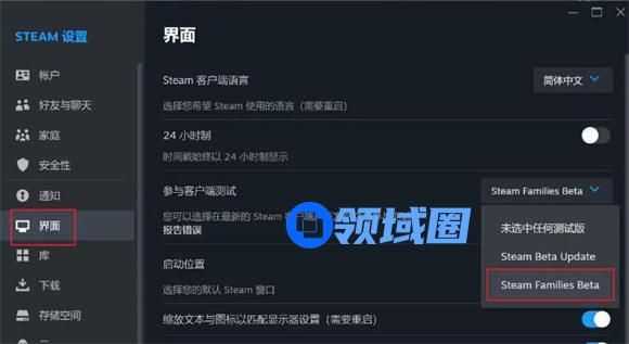 二,steam客户端都调到families bata模式