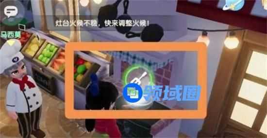 1、在进入游戏之后,请依照系统给出的指引,顺利地来到灶台所在的位置,然后将目光聚焦在右侧,点击那里的烹饪图标。
