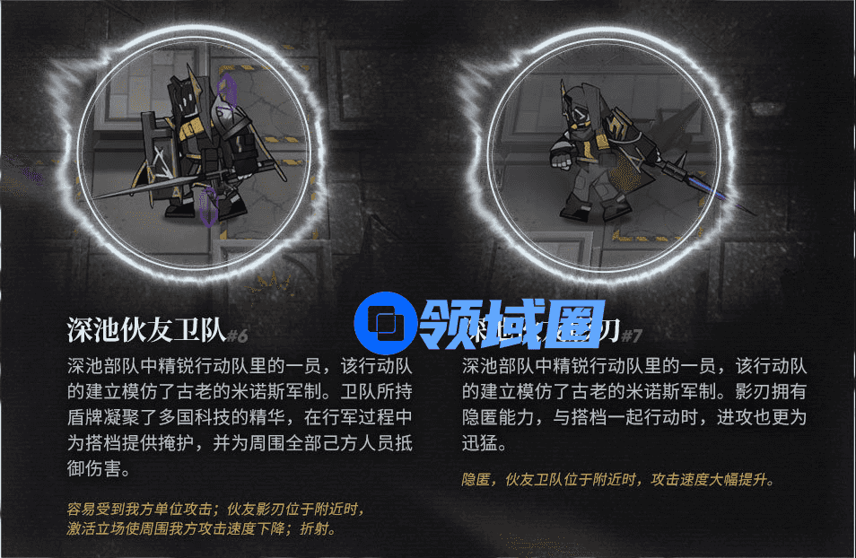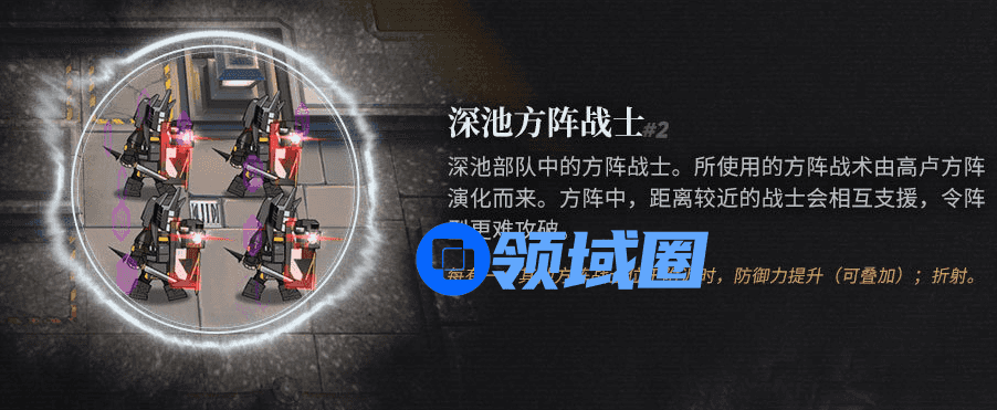 深池伙友卫队是具有嘲讽属性的敌人,能够通过紫盾和自身属性来进行大量的伤害吸收。