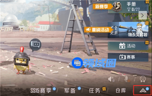 首先来到和平精英游戏大厅,找到右下角的箭头,点击。