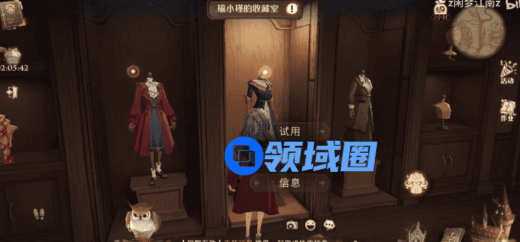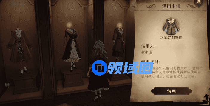首先我们需要进入好友的寝室,我们在好友的收藏室中的衣柜处,我们看到好友的衣服是挂上去的,然后靠近衣柜,会出现试用和借用和信息,我们直接选择借用就可以了