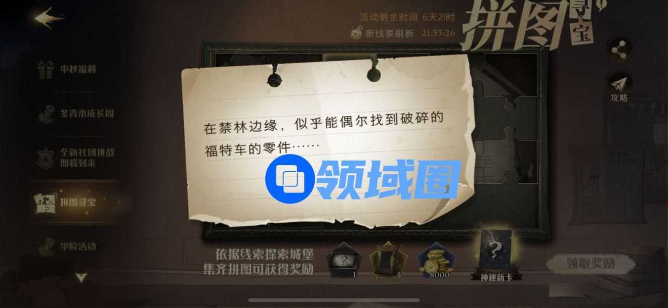 碎片线索是在禁林边缘,似乎能偶尔找到破碎的福特车的零件。这个线索是需要我们去打败打人柳