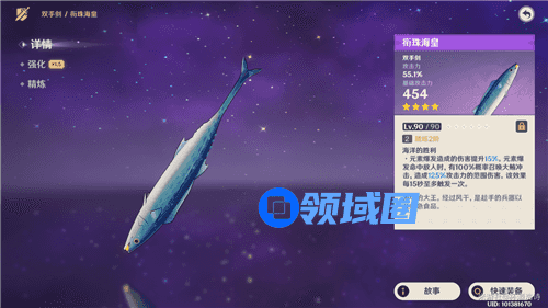 咸鱼大剑是一个攻击力加成的武器,90级属性增加454攻击力,55.1%攻击力,基础攻击力面板比较低,特技的话增加元素爆发伤害15%,并且元素爆发命中敌人的时候会召唤大鲔冲击,造成125%范围伤害。