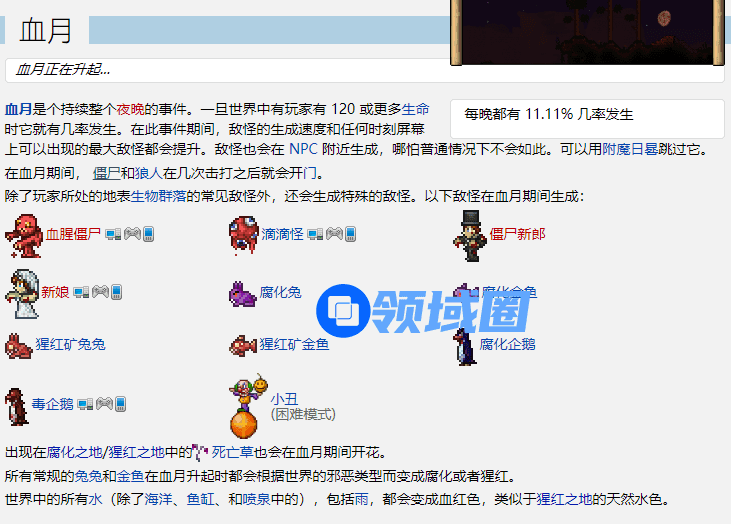 1,血月事件,一旦世界中有玩家有 120 或更多生命时它就有几率发生