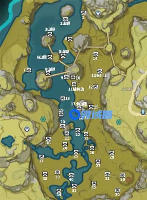 本次的玄月宝箱在庆云顶左边的长河附近,一共40个,具体位置如下: