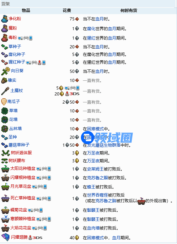 我们在不同情况下找树妖购买物品时,货物会因为世界一个情况而给不同的物品让玩家购买。