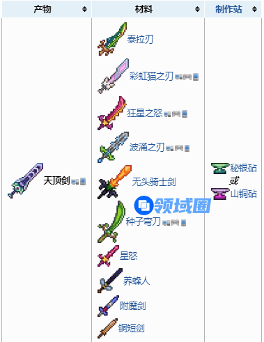 首先天顶之剑是最强的剑了,攻击还可以穿透方块攻击,而且还可以自动攻击敌人,现在让我们看看怎么合成吧