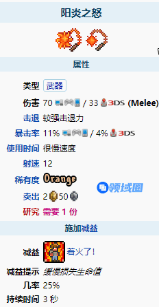 阳炎之怒的伤害很高有70攻击力,击退力也是很强,有百分之11%的暴击率,射速有点慢