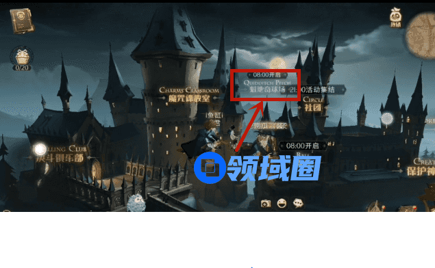 首先我们先打开地图来到城堡上空,到达城堡上空之后往魁地奇球场飞去