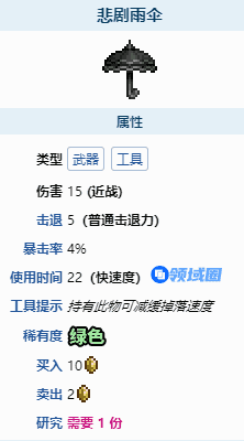 首先雨伞都是差不多的,不过悲剧雨伞的伤害高很多,比普通雨伞多一个暴击,属于近战武器,悲剧雨伞我们是不能在击杀怪物获取,只能在服装商中购买,其他的功能一样。