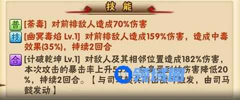 2、技能:对前排敌人造成159%伤害,造成中毒效果(35% ),持续2回合