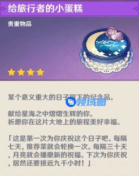 打开给旅行者的小蛋糕,会获得脆弱树脂+给旅行者的小蛋糕奖励。其中,脆弱树脂就是恢复60点体力的道具,至于小蛋糕嘛,就只能等待下一次生日的时候才能再次使用。