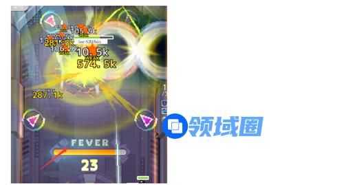 F条:Fever的简称,狂热状态的意思。进入boss面时,就会出现空的fever条,玩家通过对boss造成伤害(可以说直击、强化弹射、技能伤害),增加fever槽里的能量,当fever槽能量满时,玩家会进入fever状态,此时,战斗场景会发生变化,场景中会出现加速弹板或者是hp药水/能量药水等。同时在fever状态时,boss的Break · Down的容易度提升。进入fever状态后,fever槽会逐渐清空,最后变回普通状态,再次充能。