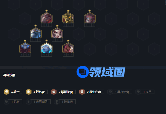 首先我们要确定阵容英雄的选择,英雄选择分别是努努,酒桶,瑟提,洛,吸血鬼,奶妈,艾翁。组成羁绊为四斗士,四复苏,二黎明,二复生,