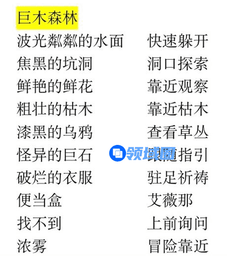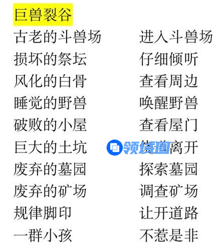 首先深渊事件一个分为三个部分,分别是巨木森林,终末之地,巨兽裂谷。而且每个只有十到题目,下面就是题目和答案