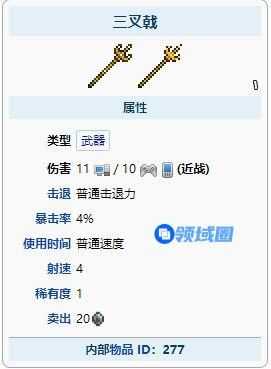 这两个都属于非常早期就能拿到的武器,长毛有概率在地表的箱子里开出,三叉戟需要冒险下海,足够幸运的话能在海里的水箱中开出(也不一定要下海,有时候地表的池塘里也有水箱)