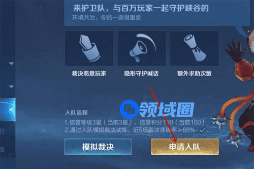 加人必须满足一下两个条件:入队条件1:信誉等级7星且信誉积分=100分,入队条件2:通过入队模拟裁决测试