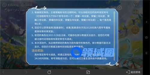 综上所述,上面就是领取荣耀六年玩家称号的方法,现在小伙伴们知道了吗?